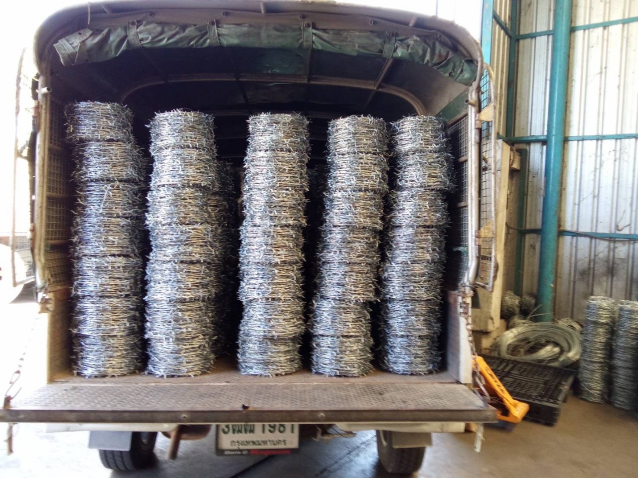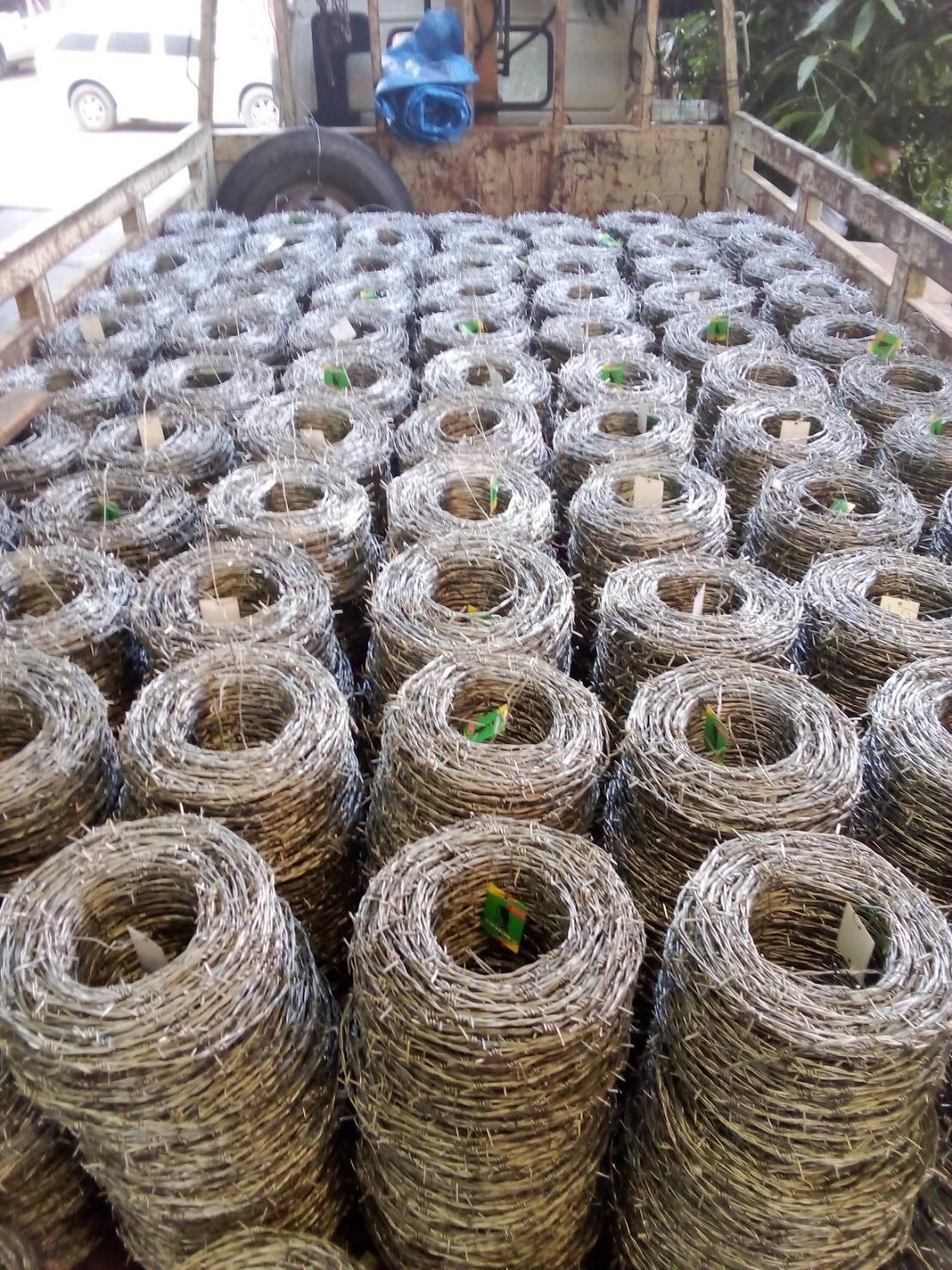 ผลิตจากลวดชุบสังกะสี ด้วยการชุบแบบร้อน ผลิตด้วยเครื่องจักรอัตโนมัติตามมาตราฐานโรงงาน เกลียวหนามพันแบบไขว้สลับสวนทาง